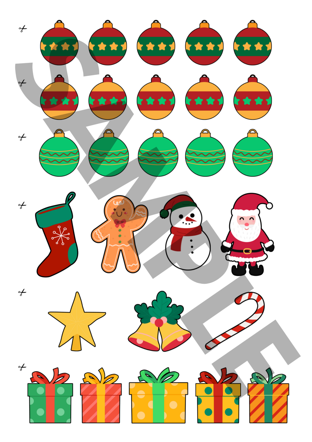 2) 27x Ornaments (inc. Santa, Star, Presents)